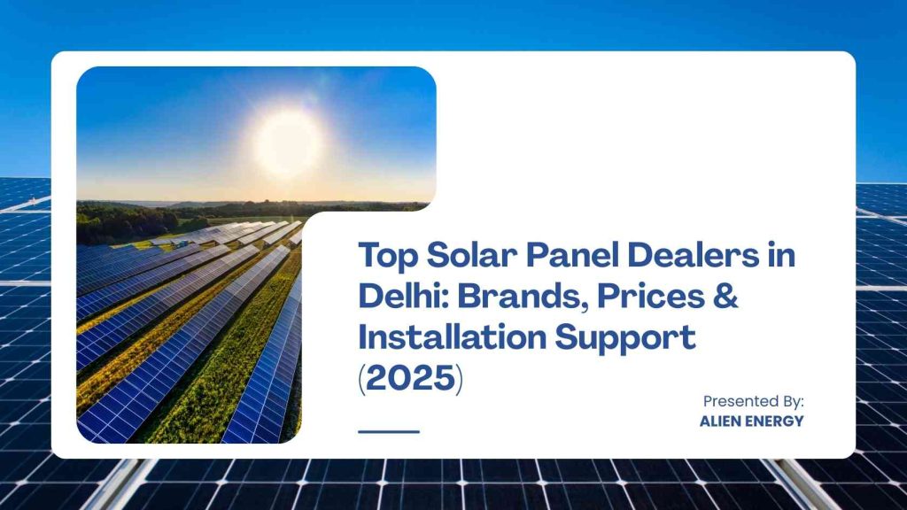 The best solar panel dealers in Delhi provide a mix of quality products, expert installation, and reliable after-sales service. Dealers like Alien Energy Solar, Tata Power, Loom Solar, Waaree, and UTL lead the market in 2025. Always compare pricing, warranty, and installation support before finalizing your solar dealer.